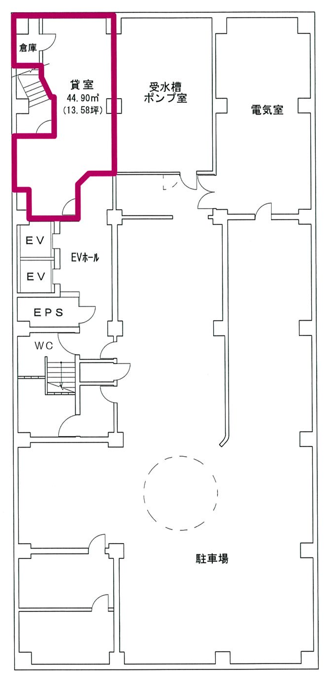 | 地下1階 | 店舗・事務所・ショールーム | 44.90㎡ (13.58坪) |