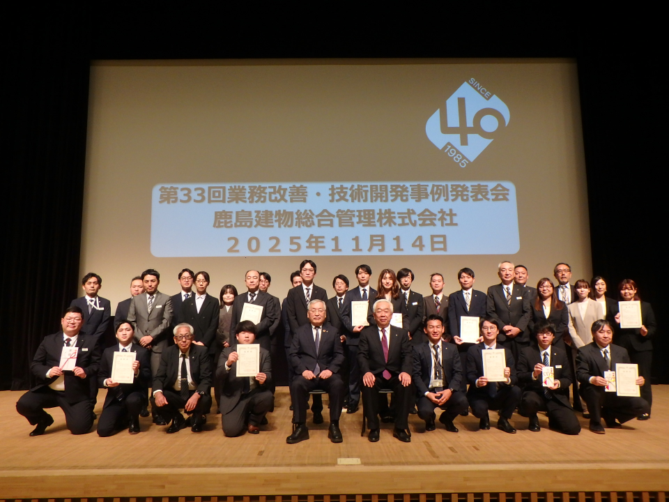 2025年11月14日、大宮門街 RaiBoC Hallにて「第33回業務改善・技術開発事例発表会」を開催しました。建物管理レベルの向上と技術の水平展開、業務の改善、社員の相互啓発を目的として、特別発表2事例を含めた12事例の発表がありました。オンライン配信の視聴も合わせ、参加者は約670名にのぼりました。
